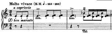 Transcendental Étude No. 2 in A minor, "Molto vivace", is the second of twelve Transcendental Études by Franz Liszt. The occasionally-used alternate title Fusées (French: “Rockets”) is not Liszt's own and was not approved by Liszt.[1][2] It was added by Ferruccio Busoni in his edition of the Études. It is a study in alternating hands, hands overlapping, both hands playing the same note alternatingly, and steep right hand leaps.