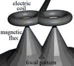 A number of different types of coils exist, each of which produce different magnetic fields. The round coil is the original used in TMS. Later, the figure-eight (butterfly) coil was developed to provide a more focal pattern of activation in the brain, and the four-leaf coil for focal stimulation of peripheral nerves. The double-cone coil conforms more to the shape of the head.[33] The Hesed (H-core), circular crown and double cone coils allow more widespread activation and a deeper magnetic penetration. They are supposed to impact deeper areas in the motor cortex and cerebellum controlling the legs and pelvic floor, for example, though the increased depth comes at the cost of a less focused magnetic pulse.[12]