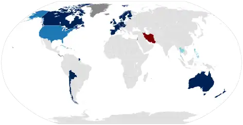 Not all armed forces have policies explicitly permitting LGBT personnel. Generally speaking, Western European militaries show a greater tendency toward inclusion of LGBT individuals.[1] As of January 2021, 21 countries allow transgender military personnel to serve openly: Australia, Austria, Belgium, Bolivia, Brazil, Canada, Chile, Czechia, Denmark, Estonia, Finland, France, Germany, Ireland,[2] Israel, the Netherlands, New Zealand, Norway, Spain, Sweden, and the United Kingdom.[3] Cuba and Thailand reportedly allowed transgender service in a limited capacity.[3] In 1974, the Netherlands was the first country to allow transgender military personnel.[4] The United States has allowed transgender personnel to serve in the military under varying conditions since President Joe Biden signed an executive order that allowed them to do so.[5]