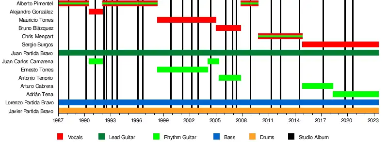 - Juan Carlos Camarena – rhythm guitar (1990–1992, 2004–2005)