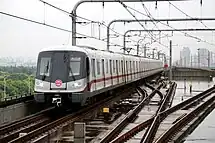 A Line 11 train arriving at Nanxiang station of Shanghai Metro.