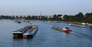 The Port of Rotterdam, Netherlands is the largest port in Europe and one of the busiest ports in the world, handling some 440 million metric tons of cargo in 2013. When the associated Europoort industrial area is included, Rotterdam is by certain measurements the world's busiest port. Two thirds of all inland water freight shipping within the E.U., and 40% of containers, pass through the Netherlands.[9] Other large ports are the Port of Hamburg in Germany and the Port of Antwerp in Belgium. They are all a part of the so-called "Northern Range".