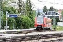 Traunstein station is the only station of the large district town of Traunstein in the German state of Bavaria. It has four main line platform tracks and two bay platform tracks and is classified by Deutsche Bahn as a category 4 station. The station is a rail junction and is located on the Rosenheim–Salzburg, Traunstein–Ruhpolding, Traunstein–Waging and Traunstein–Garching lines.