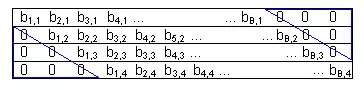 An example of coding four packets using TNC. Bit bi,k {0,1} is the ith bit of the kth packet. Each packet has original length of B bits. The resulting coded packet has length B + 3 bits. Information about the number of redundant '0' bits added at the head of each packet is included in the coded packet's header.