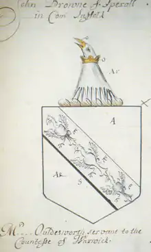 Tricked arms of John Browne of Spexhall, Suffolk (1591)