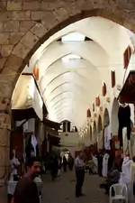 Unlike other khans built around a square courtyard, el-Khayyatin, built in the 14th century, is a 60 meter long passage with arches on each side.[45]