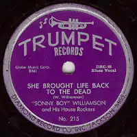 The goal of Trumpet Records was to record musicians from the Mississippi Delta that did not have access to recording studios in New York City or Los Angeles. Trumpet competed with the Bihari brothers of Modern Records. Both companies recorded some of the era's best blues music, from ballads to jump blues and boogie woogie.[2] Elmore James recorded his original "Dust My Broom" here, and the label was the first to record Sonny Boy Williamson II.[3]