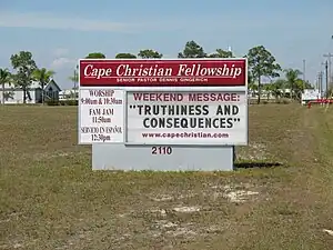A church sign stating, "Truthiness and Consequences", taken March 10, 2007, in Cape Coral, Florida