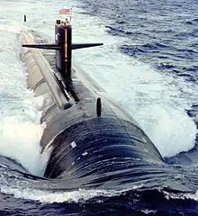Laminar and turbulent water flow over the hull of a submarine. As the relative velocity of the water increases turbulence occurs.