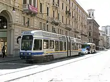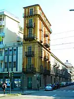 Turin was then a target of Allied strategic bombing during World War II, being heavily damaged by the air raids in its industrial areas as well as in the city centre. Along with Milan, Genoa, and La Spezia, Turin was one of Italy's four cities that experienced area bombing by the RAF; the heaviest raid took place on 13 July 1943, when 295 bombers dropped 763 tons of bombs, killing 792 people.[24] Overall, these raids killed 2,069 inhabitants of Turin, and destroyed or damaged 54% of all buildings in the city.[25][26]