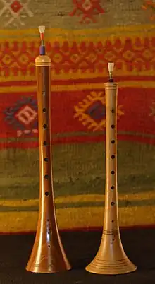Woodwind instruments, include the double-reed, shawm-like zurna, ney (duduk), the single reed, clarinet-like sipsi, the single-reed twin-piped çifte, the end-blown flutes kaval and ney, and the droneless bagpipe, the tulum. An old shepherd's instrument, made from an eagle's wing bone, was the çığırtma. Many of these are characteristic of specific regions.