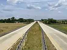 In 2016, construction began on the US 301 toll road.[38] A groundbreaking ceremony was held on February 5, 2016, near the Maryland state line, with Governor Jack Markell, FHWA administrator Gregory G. Nadeau, and DelDOT secretary Jennifer Cohan in attendance.[39] The expected cost of the project was $600 million, and DelDOT sought a federal loan to pay for a third of the costs, which was approved in August 2015.[40][37] The toll road, which cost $636 million to build, was originally planned to open to traffic on January 1, 2019, but inclement weather delayed the opening date.[41] The US 301 toll road opened to traffic on January 10, 2019.[42] With the opening of the US 301 toll road, restrictions on non-local truck traffic were put into place on the former alignment of US 301.[43] On March 1, 2019, a ribbon-cutting ceremony marking the completion of the project was held, with Governor John Carney, Lieutenant Governor Bethany Hall-Long, DelDOT secretary Cohan, U.S. Senators Tom Carper and Chris Coons, and Middletown Mayor Ken Branner in attendance.[44]