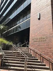 The UCLA School of Nursing is a nursing school affiliated with UCLA, and is located in the Westwood neighborhood of Los Angeles, California. The school is housed in the Doris and Louis Factor Health Sciences Building, known as the Factor Building, on the south end of UCLA's 400-plus-acre campus, adjacent to the Ronald Reagan UCLA Medical Center.