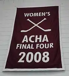 In the semifinals, UMass and Rhode Island played one of the most significant chapters of the many in their storied rivalry. Corell and URI's Kayla DiLorenzo, two of the ACHA's best goalies, traded big saves with 29 and 23 stops, respectively, but early goals from Labossiere and Raschelle Bräm were just enough for a 2–1 victory.[21] The Minutemen fell one win short of their intended destination though, as Miami University formally launched a dynasty that would eventually grab three national titles in four years with a 3–1 championship game win. Siobhan Elvin scored a shorthanded goal for UMass to make the score 2–1 early in the second period, but Kaley Mooney answered quickly for the RedHawks and penalty trouble down the stretch doomed a comeback attempt.[22] Nevertheless, the second-place finish remains the program's high water mark.