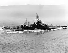Maryland now joined the Operation Magic Carpet fleet.[15] During the remaining months of 1945, Maryland made five voyages between the west coast and Pearl Harbor, returning more than 8,000 servicemen to the United States. Arriving at Seattle, Washington on 17 December, Maryland completed her Operation Magic Carpet duty. She entered Puget Sound Naval Shipyard on 15 April 1946, and was placed in commission in inactive reserve on 16 July.[15] She was decommissioned at Bremerton on 3 April 1947, and remained there as a unit of the Pacific Reserve Fleet. Maryland was sold for scrapping to Learner Company of Oakland, California on 8 July 1959.[4]