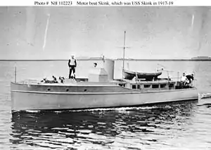 - Department of the Navy Naval History and Heritage Command Online Library of Selected Images: Civilian Ships: Skink (Motor Boat, 1917). Served as USS Skink (SP-605) in 1917-1919