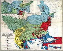 The Aromanians conform a Balkan ethnic group which is scattered in several countries such as Albania, Bulgaria, Greece, North Macedonia, Romania and Serbia.[1][2] Usually, the neighbors of the Aromanians use the term "Vlach" (Turkish: Ulahlar) to refer to them. However, the same term is also used for the Megleno-Romanians, a small related Balkan people.[3] Before the establishment of the Ullah millet, the Aromanians were under the jurisdiction of the Greek Ecumenical Patriarchate of Constantinople. This was because they practised Eastern Orthodoxy. During this time, most of the priests were Greeks and the Aromanians could not use their own language in church services. This conflict between the Aromanians and Greeks eventually escalated to physical violence, sparking fights between members of both groups. Due to this, the Aromanians started to call for help to the Ottoman authorities and the Romanian Government.[4]