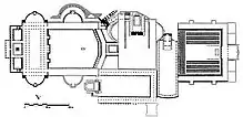 Floor plan of the Forum of Trajan. On the left side of the floor plan are the two library rooms.