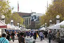 Heart-of-the-City farmer's market, view east along Fulton/UN Plaza towards Market (2016)