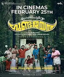 Upacharapoorvam Gunda Jayan (transl.Courtesy goon Jayan) is a 2022 Indian Malayalam-language comedy drama film directed by Arun Vaiga.[1] The film stars Saiju Kurup in the title role.[2][3][4][5] Sharaf U Dheen was earlier reported to play one of the leads in the film but was replaced by Shabareesh Varma.[6] The film released after a delay of a few years.[7] This was the first film to be distributed by Dulquer Salmaan's Wayfarer Films.[1]