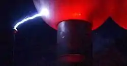 Spark made by the Van de Graaff generator at The Museum of Science in Boston, Massachusetts