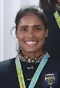 Vandana Katariya (born 15 April 1992) is an Indian field hockey player. She plays as a forward in the Indian national team. Vandana rose to prominence in 2013, being India's top goal-scorer in the 2013 Women's Hockey Junior World Cup, where India won a bronze medal; she scored five goals in the tournament, the third by any player.