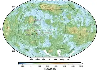 See Table 5-5, Missions to Venus, 1961–2000. Landing near Navka Planitia - 1 2 3 "Larry Klaes, The Soviets and Venus, Part 1, 1993". Archived from the original on 29 September 2015. Retrieved 29 September 2015.
