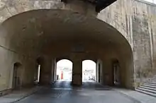 The gate originally had a drawbridge and a ditch. The ditch was filled in over the years, but it was uncovered and restored in 2010.[4]
