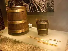 The museum is most famous for the completely whole Oseberg ship, excavated from the largest known ship burial in the world. Other main attractions at the Viking Ship Museum are the Gokstad ship and Tune ship. Additionally, the Viking Age display includes sledges, beds, a horse cart, wood carving, tent components, buckets and other grave goods.[3]