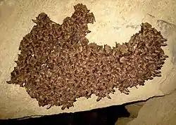 A tightly packed cluster of hibernating Virginia big-eared bats