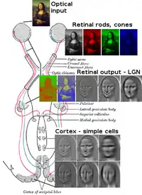 - ↑ Jessell, Thomas M.; Kandel, Eric R.; Schwartz, James H. (2000). "27. Central visual pathways". Principles of neural science. New York: McGraw-Hill. pp. 533–540. ISBN 978-0-8385-7701-1. OCLC 42073108.