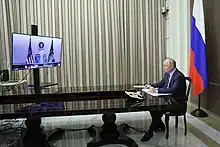 - ↑ Sabin, Lamiat (22 April 2022). "Video of Vladimir Putin gripping table in meeting sparks concerns about his health". The Independent. Retrieved 1 May 2022.