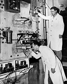 Cohn looking through the periscope of the X-10 Graphite Reactor (1946)