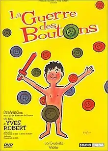 La Guerre des boutons or War of the Buttons is a 1962 French film directed by Yves Robert. War of the Buttons is about two rival kid gangs whose playful combats escalate into violence. The title derives from the buttons that are cut off from the rival team's clothes as combat trophies. The film is based on La Guerre des boutons, a novel by Louis Pergaud (1882–1915), who was killed in action in World War I and whose works portray a fervent anti-militarism.
