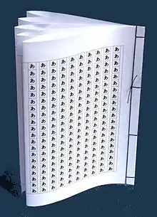 Wasōbon (Japanese: 和装本, or "wahon"(和本)[1]) is a traditional book style in Japan that dates from the late eighth century AD with the printing of "Hyakumantō Darani" during the reign of Empress Shōtoku (764-770AD).[2] Most of the books were hand-copied until the Edo period (1603–1867), when woodblock printing became comparatively affordable and widespread. Movable-type printing had been used from the late 16th century, but for various aesthetic and practical reasons woodblock printing and hand-copied remained dominant until much later. Japanese equivalents for "book" include (hon) and 書籍 (shoseki). The former term indicates only bound books, and does not include scrolls. The latter is used for printed matter only. The most general term is 書物 (shomotsu), which means all written or printed matter that has been collected into a single unit, regardless of construction.