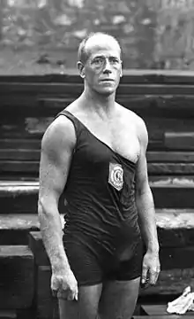 German sources do not list Hans Aniol, Max Hainle, or Herbert von Petersdorff as members of the Berliner Swimming Club, mentioning Gustav Erpf, Asmus Simonsen, and Max Schöne instead, but Mallon notes that there is proof contemporary to the tournament for the participation of only the former trio. Three members of the Brussels Swimming and Water Polo Club, Georges Romas, Guillaume Séron, and A. R. Upton, are also left off of some lists despite evidence that they participated in the first round.[5] The roster for the Osborne Swimming Club of Manchester as listed by the International Olympic Committee is Thomas Coe, John Henry Derbyshire, Peter Kemp, William Lister, Arthur G. Robertson, Eric Robinson, and George Wilkinson. Lister, however, had died two weeks prior to the Games,[4] while Derbyshire, Robinson, and Wilkinson all played water polo matches in England either during the tournament or too soon after it to have traveled back from Paris in time. A list of players contemporary to the match does not include Robertson, but does list Coe and Kemp in addition to Robert Crawshaw, William Henry, John Arthur Jarvis, Victor Lindberg, and Frederick Stapleton.[4] Lindberg has been considered the first New Zealand Olympian,[8] although he "was born in Fiji to Swedish and Irish parents, lived in New Zealand from a young age and, in Paris, represented a British club."[4]