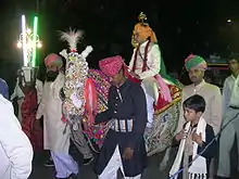 - Arrival of the groom on a horse in a procession, and being greeted at the door.