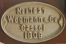 The form coach factory of Wegmann & Co. was founded in 1882 in Kassel (then Cassel) by Kommerzienrat, Peter Wegmann, and Richard Harkort as the Casseler Waggonfabriken von Wegmann, Harkort & Co. In 1886 it changed its name to Wegmann & Co.