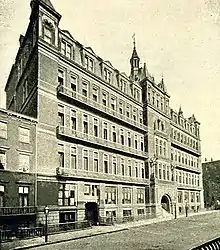 1893 illustration of the hospital's West 15th Street facade, near Fifth Avenue