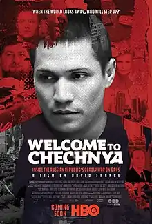 Welcome to Chechnya (Russian: Добро пожаловать в Чечню, romanized: Dobro pozhalovat' v Chechnyu) is a 2020 documentary film by American reporter, author and documentarian David France.[1] The film centers on the anti-gay purges in Chechnya of the late 2010s, filming LGBT Chechen refugees using hidden cameras as they made their way out of Russia through a network of safehouses aided by activists.[1]