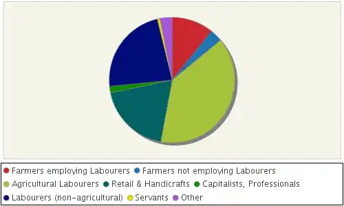 Pie chart showing males aged 20 & over, in 9 occupational categories in 1831.[5]