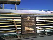The race starts at the base of the Palisades Tahoe ski resort in Olympic Valley and finishes at the Placer High School track in Auburn, California. The terrain is quite rugged, frequently showcasing snow on the highest passes and record hot temperatures throughout the course.[5] Runners ascend a cumulative total of 18,090 feet (5500 m) and descend a total of 22,970 feet (7000 m) on mountain trails before reaching the finish. Because of the length, the race commences at 5 a.m. and continues through the day and into the night. Runners finishing before the 30-hour time limit for the race receive a commemorative bronze belt buckle, while runners finishing in under 24 hours receive a silver belt buckle.