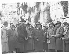 In 1926 an effort was made to lease the Maghrebi waqf, which included the wall, with the plan of eventually buying it.[68] Negotiations were begun in secret by the Jewish judge Gad Frumkin, with financial backing from American millionaire Nathan Straus.[68] The chairman of the Palestine Zionist Executive, Colonel F. H. Kisch, explained that the aim was "quietly to evacuate the Moroccan occupants of those houses which it would later be necessary to demolish" to create an open space with seats for aged worshippers to sit on.[68] However, Straus withdrew when the price became excessive and the plan came to nothing.[69] The Va'ad Leumi, against the advice of the Palestine Zionist Executive, demanded that the British expropriate the wall and give it to the Jews, but the British refused.[68]