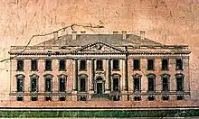 Government House in Manhattan, built in 1790–1791, was designed to be the permanent presidential mansion, but Congress moved the national capital to Philadelphia before its completion.