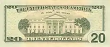 The building was originally variously referred to as the President's Palace, Presidential Mansion, or President's House.[34] The earliest evidence of the public calling it the "White House" was recorded in 1811.[35] A myth emerged that during the rebuilding of the structure after the Burning of Washington, white paint was applied to mask the burn damage it had suffered,[36] giving the building its namesake hue.[37] The name "Executive Mansion" was used in official contexts until President Theodore Roosevelt established "The White House" as its formal name in 1901 via Executive Order.[38] The current letterhead wording and arrangement of "The White House" with the word "Washington" centered beneath it dates to the administration of Franklin D. Roosevelt.[39]