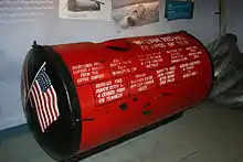 Red Hill's second trip through the Niagara rapids came on May 30, 1931, this time choosing a steel barrel 6 feet (1.8 m) long and 3 feet (0.91 m) in diameter. The opening was a 14-by-18-inch (360 mm × 460 mm) manhole, covered by sliding steel and sealed with rubber gaskets. There were air holes on each side, which were plugged with cork and could be removed. The contraption weighed over 600 pounds (270 kg) and was painted red with gold lettering that read "William Red Hill, Master Hero of Niagara" inscribed on both sides.