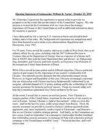 - ↑ "Opening Statement of Ambassador William B. Taylor". The Washington Post. October 22, 2019. Archived from the original on October 22, 2019. Retrieved October 23, 2019.