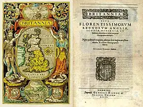 - ↑ Camden, William (1610). "The Author to the Reader". Britain, or a Chorographicall Description of the most flourishing Kingdomes, England, Scotland, and Ireland, and the Ilands adjoyning, out of the depth of Antiquitie. Translated by Holland, Philemon. London.