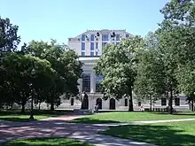 His extensive service at Ohio State University (26 years) is honored with a larger-than-life bronze statue by Erwin Frey[4] of President Thompson in academic dress, positioned in front of the eponymous William Oxley Thompson Memorial Library on "The Oval" (the central green space on the Ohio State University campus). He is known for being involved in students education and social lives, presiding over the Ohio State win over Oxford University on October 10, 1924, in intercollegiate debate. Thompson's tenure at Ohio State was marked by two seminal events. The first occurred in 1906 with the passage by the Ohio Legislature of the Eagleson Bill, which formalized and legally locked in Ohio State's flagship role in the state's public system of higher education. The Eagleson law mandated that only Ohio State, among Ohio's public universities, would be allowed to offer doctoral education or conduct basic research. The second event, and the culmination of both the raison d'être for Ohio State's founding in 1870 and the aim of the Eagleson Bill in 1906, occurred in 1916 with Ohio State's election into the Association of American Universities. Thompson also served as President of the university during World War One, which saw a massive drop in student attendance for 1917-1918 as many left to join the military or other war-related activities.