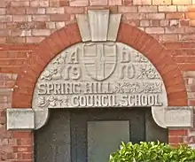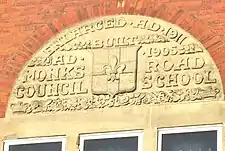 • Monk's Road Primary School, Lincoln. 1903/4 and later extended. A similar datestone to the Spring Hill School is above the gable window on this school.[46]